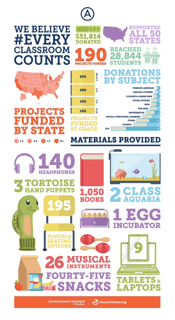 Need help making an impact through makerspaces? Check out this #EveryClassroomCounts campaign from Advancement Courses, in partnership with DonorsChoose.org, which aims to help students and teachers in need. Between Aug. 14 and Sept. 27, Advancement Courses will donate 10% of all sales to DonorsChoose.orgprojects. All educators, not just maker educators, are encouraged to submit their DonorsChoose projects for funding consideration from Advancement Courses. Last year they donated nearly $50,000! This campaign runs from Aug. 14-Sept. 27, so don’t miss out!