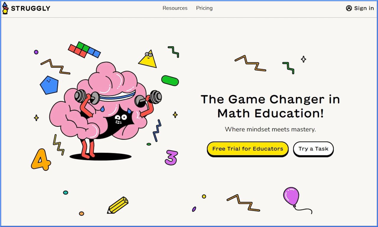 While there are many platforms offering math games, Struggly’s emphasis on the value of playful struggle sets it apart from others. Its uncluttered, easy-to-use website features stylish and fun cartoon characters, graphics, and sounds.