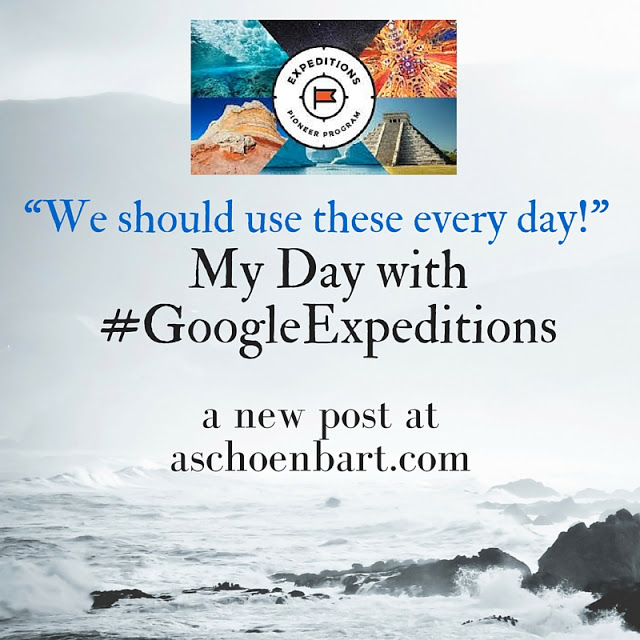 When Google announced the Expeditions Pioneer program, where they would visit schools to test the product, I jumped on the opportunity, and today the magical day has come. Eighteen classes, including every subject area, will participate today, exploring dozens of virtual fieldtrips. The response so far?: “We should use these every day!”